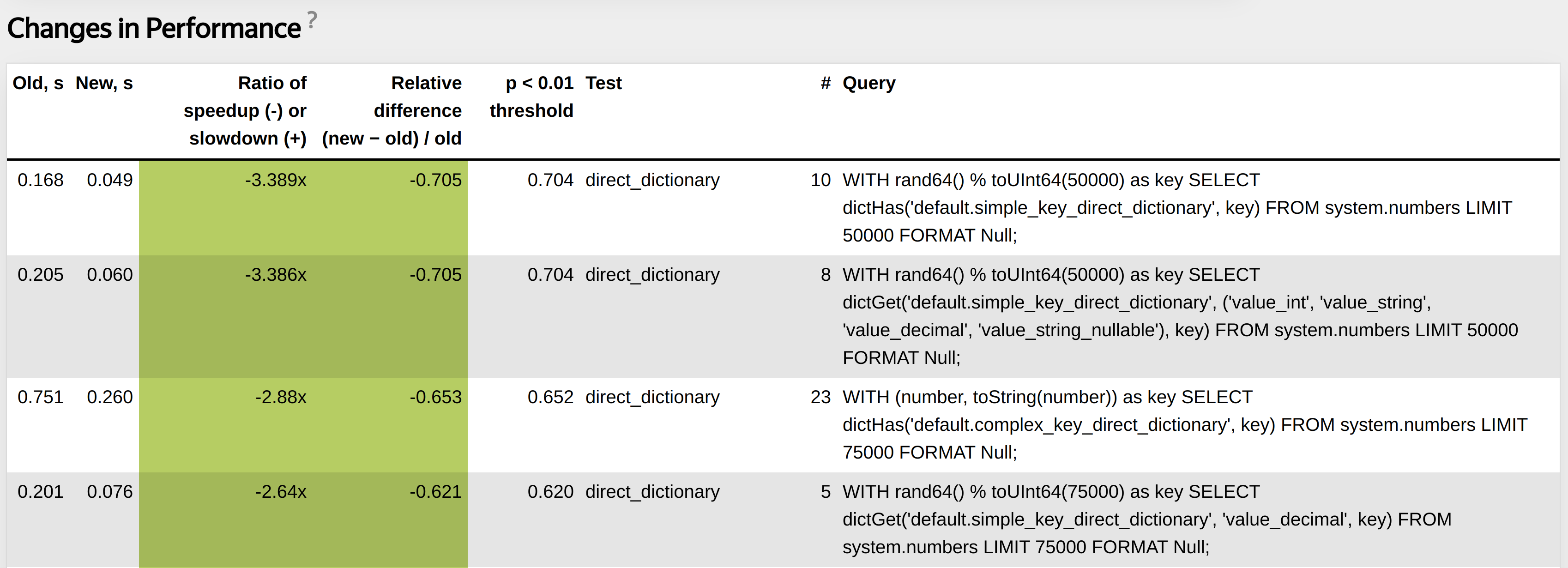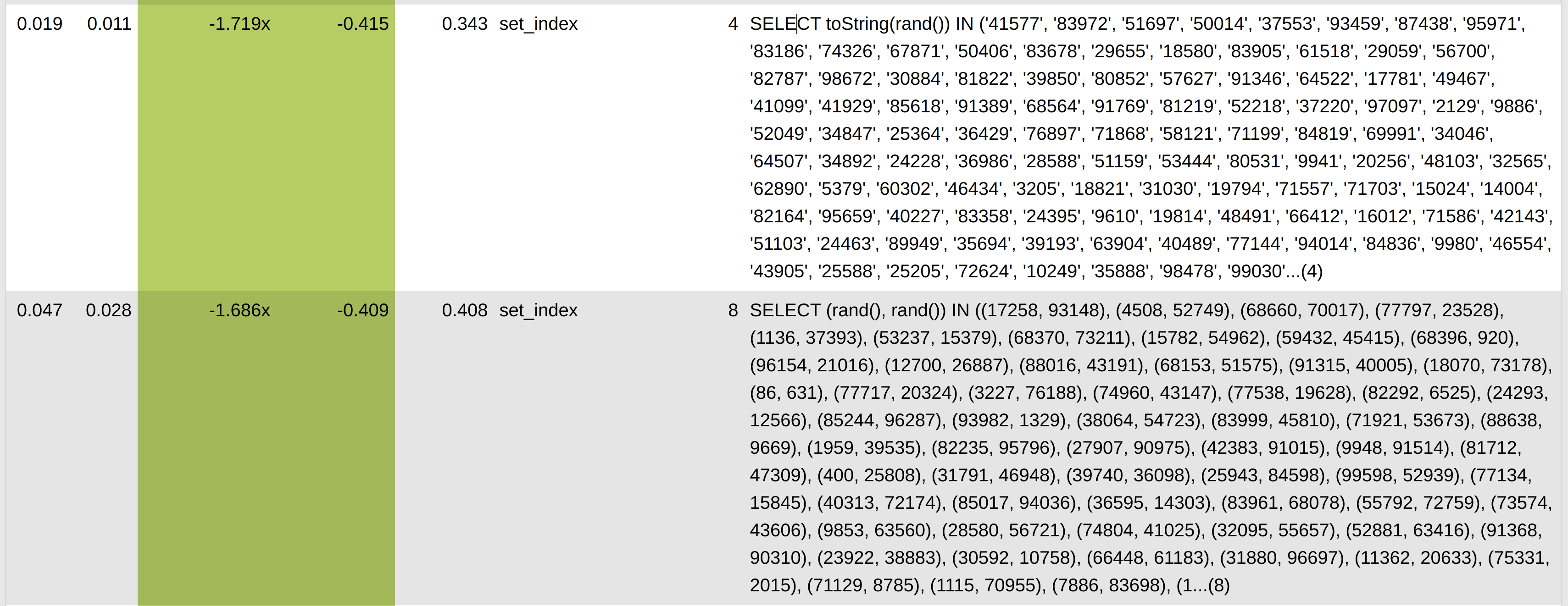 For such a query we cannot detect any changes in performance because even if nothing has changed query time can be affected.