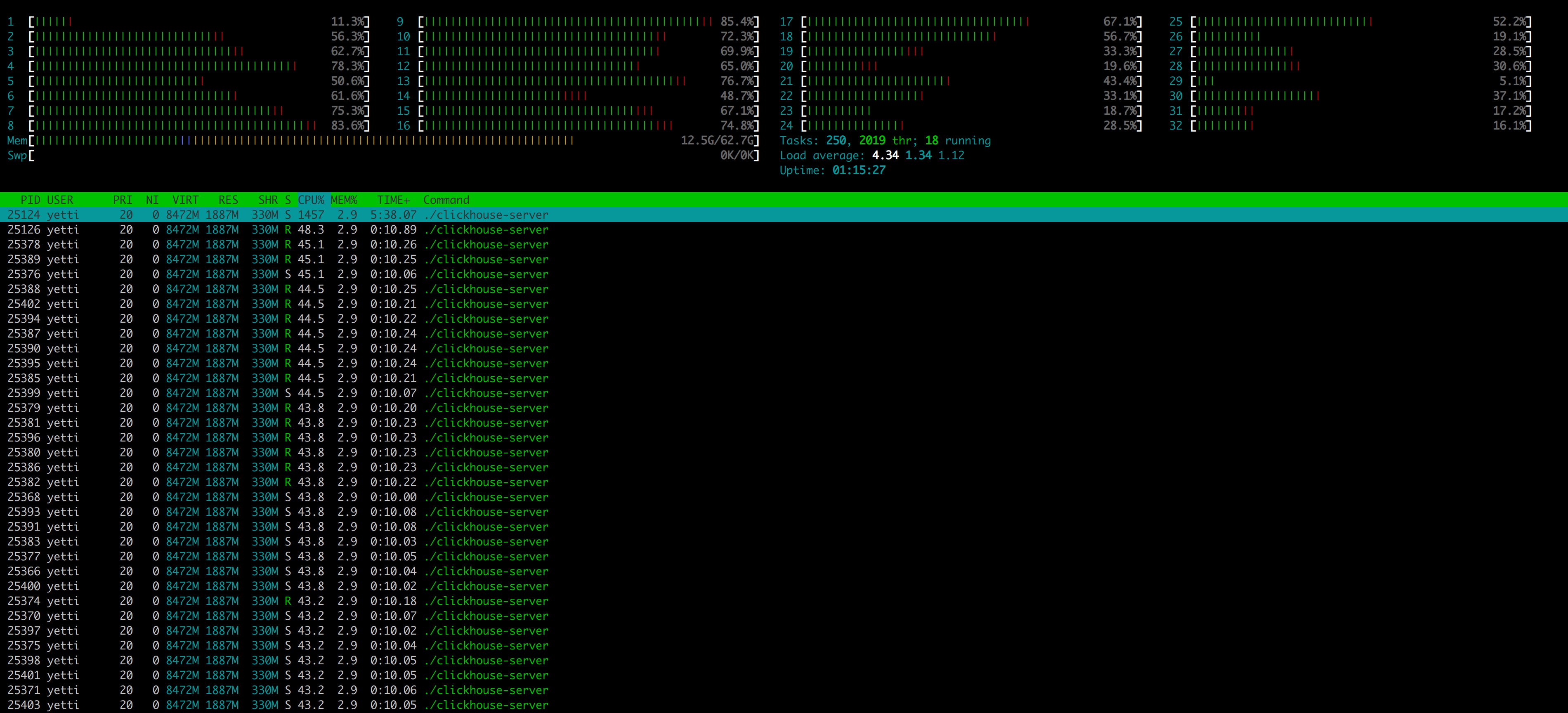— 0 rows in set. Elapsed: 5.300 sec. Processed 100.00 million rows, 1.20 GB (18.87 million rows/s., 226.40 MB/s.)