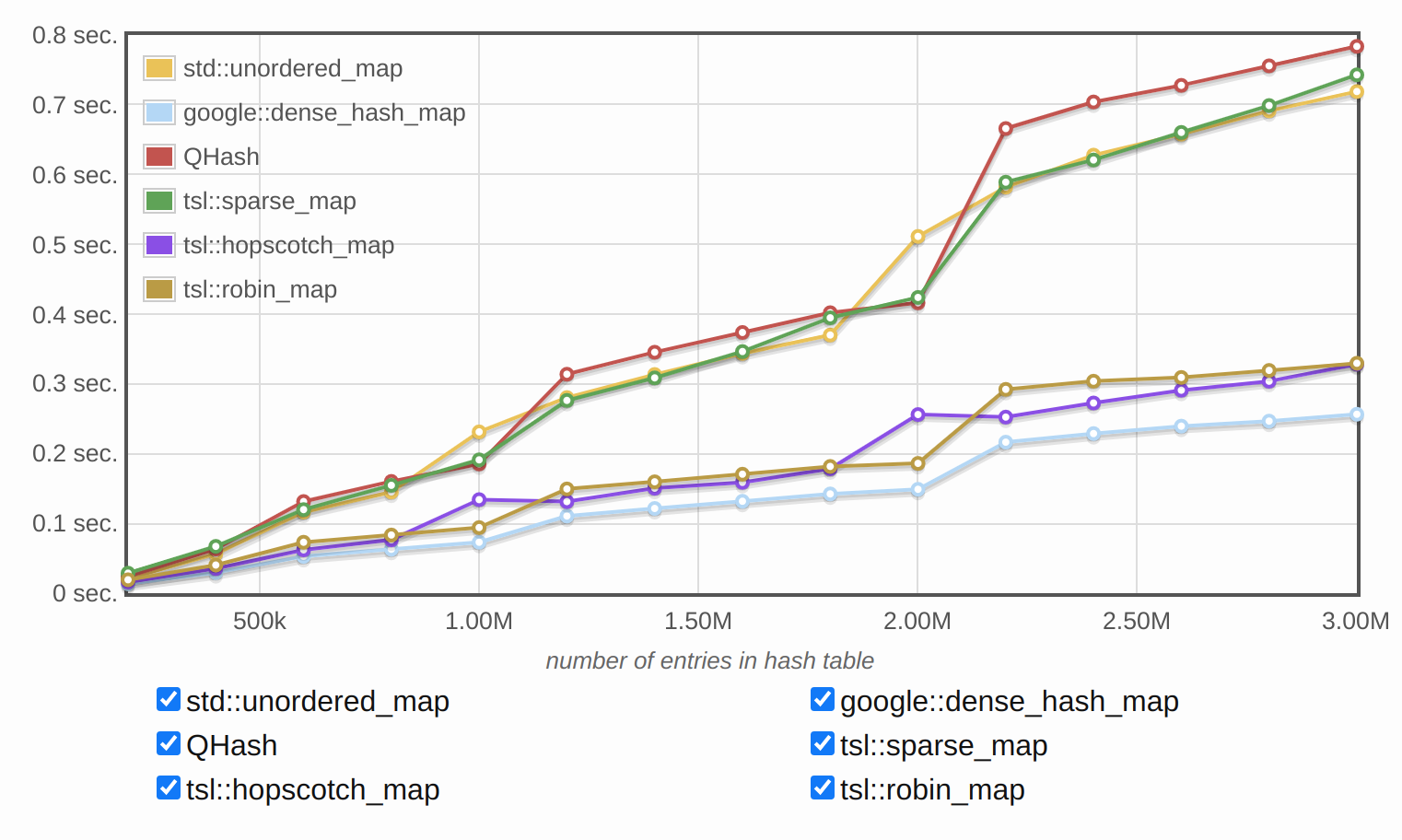 Деинициализация std::unordered_map заняла больше времени, чем бенчмарки остальных таблиц.