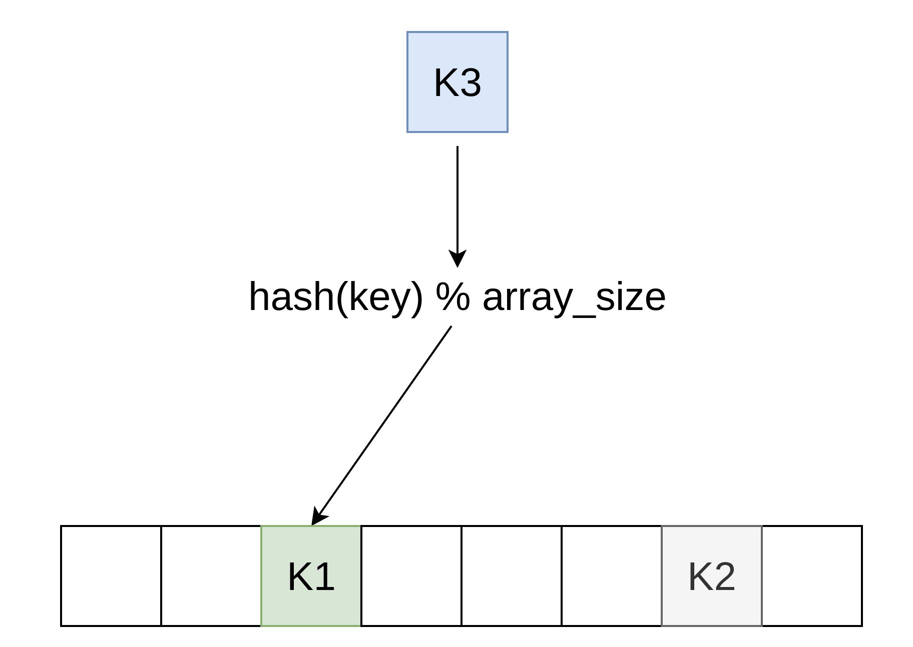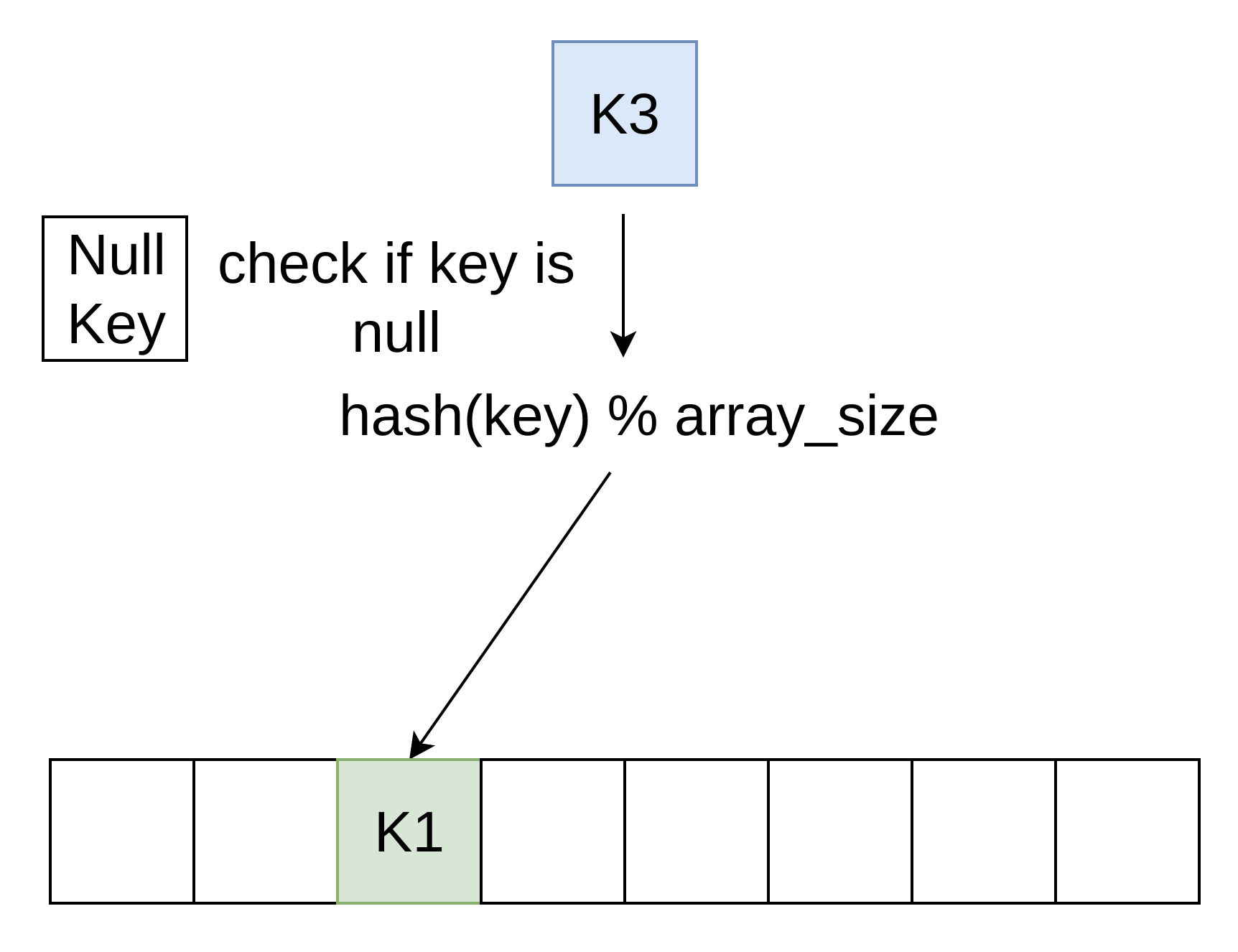 На вставке ключа мы вычисляем индекс хэш-таблицы в которую будем вставлять ключ.