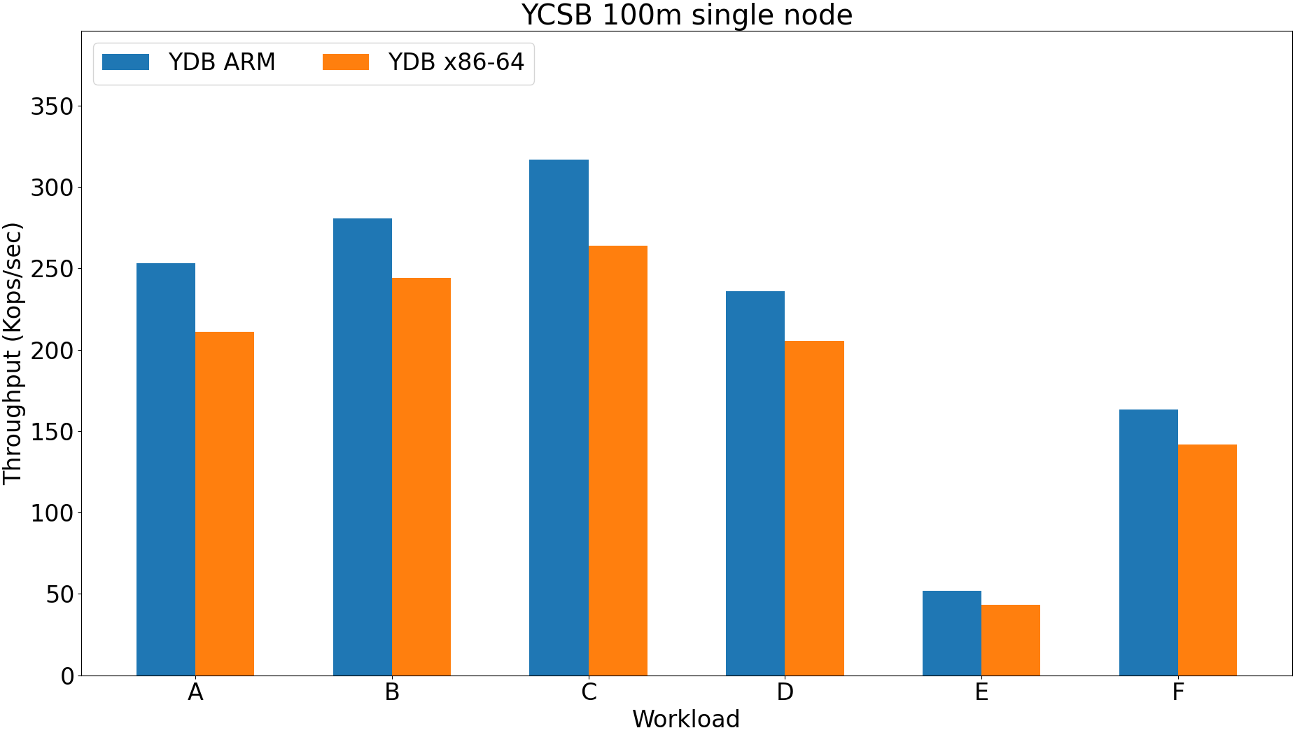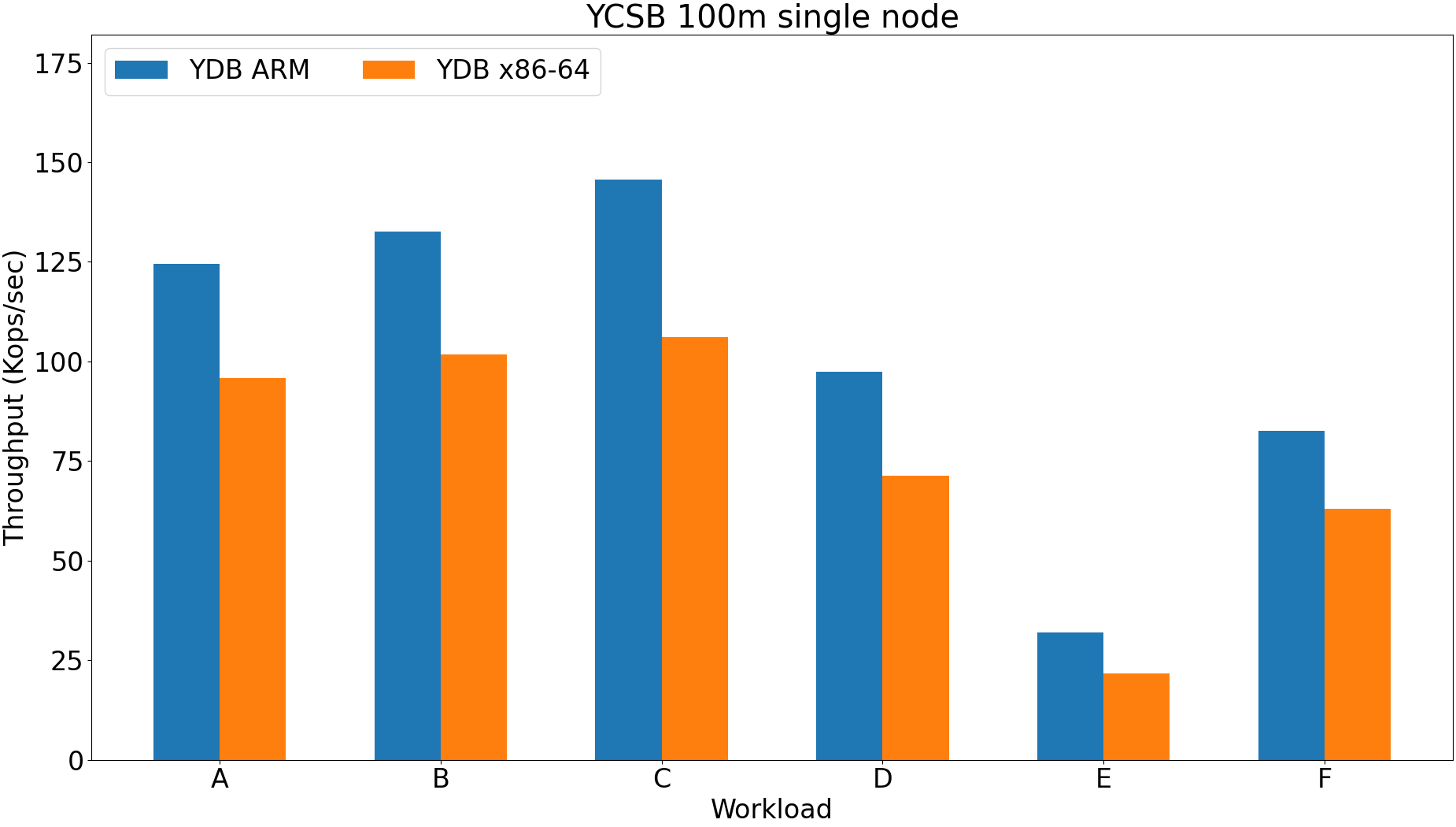 Workloads: A, B, C, D, E, F.