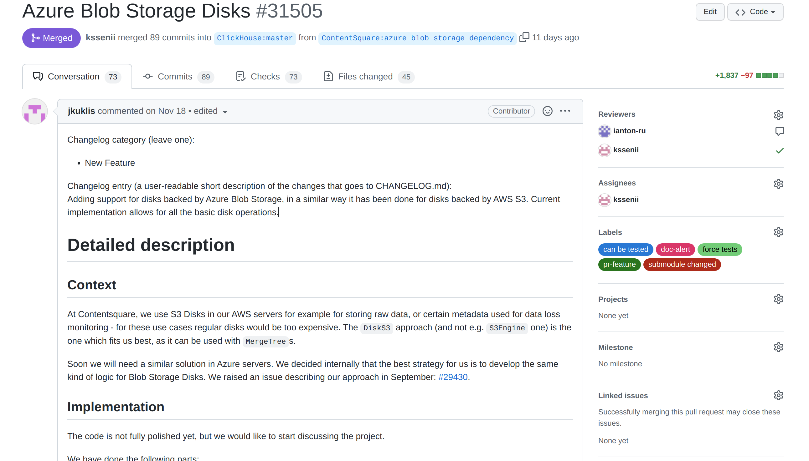 1. Implement some feature needed for your ClickHouse setup.