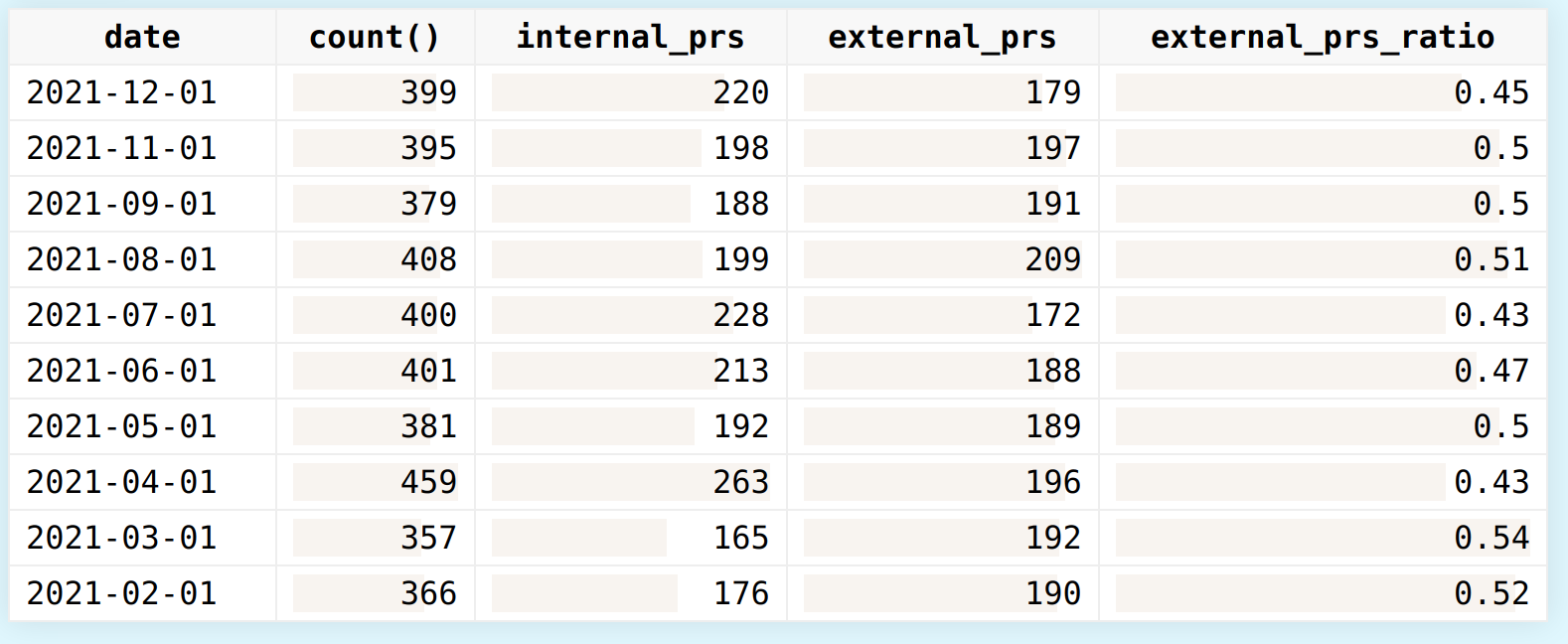 400 pull requests per month.